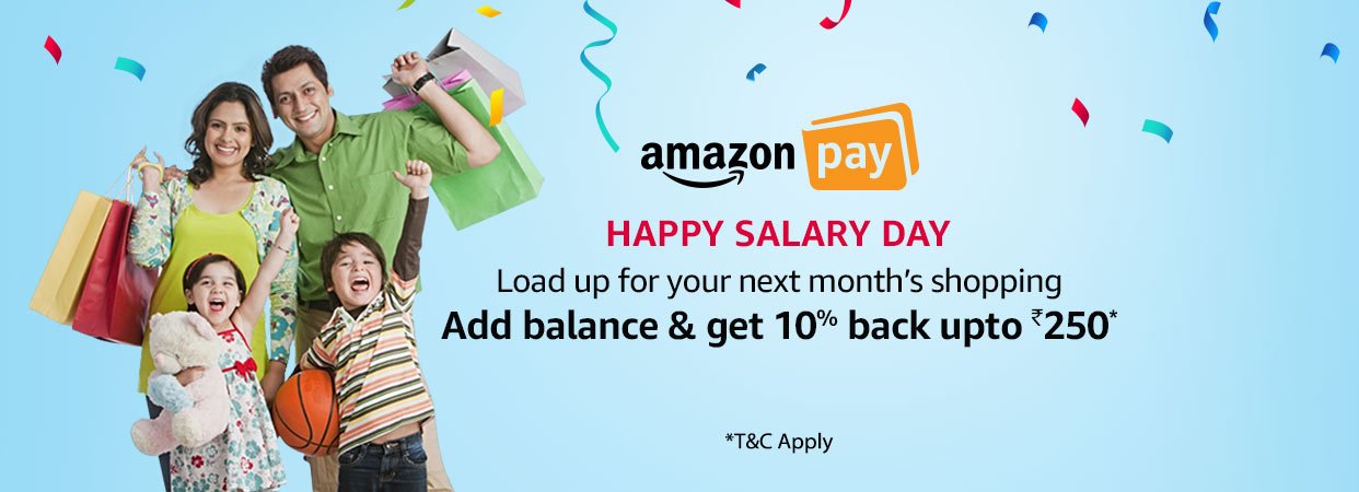 • Load Amazon Pay balance and get 10% cashback