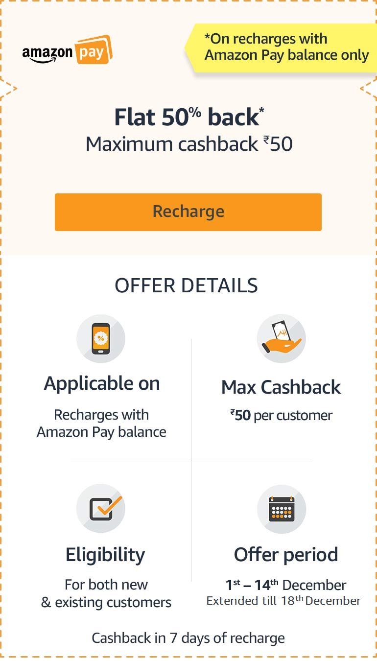 Cashback will be credited to Amazon Pay balance within 7 days of the Recharge
