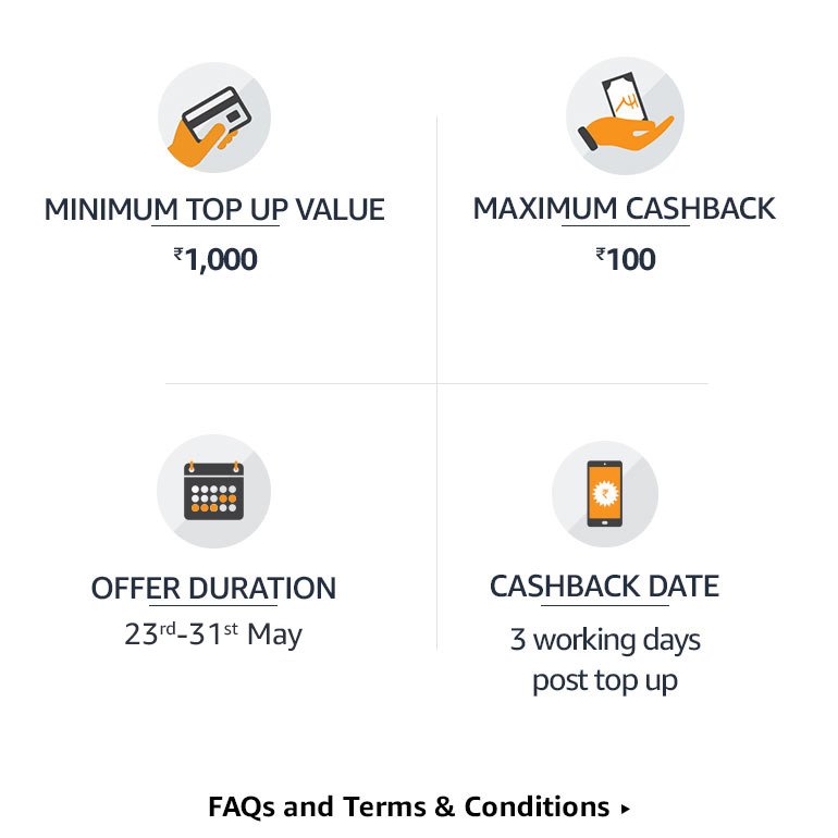 Add minimum Rs.1000 Amazon Pay balance and get flat Rs.100 cashback